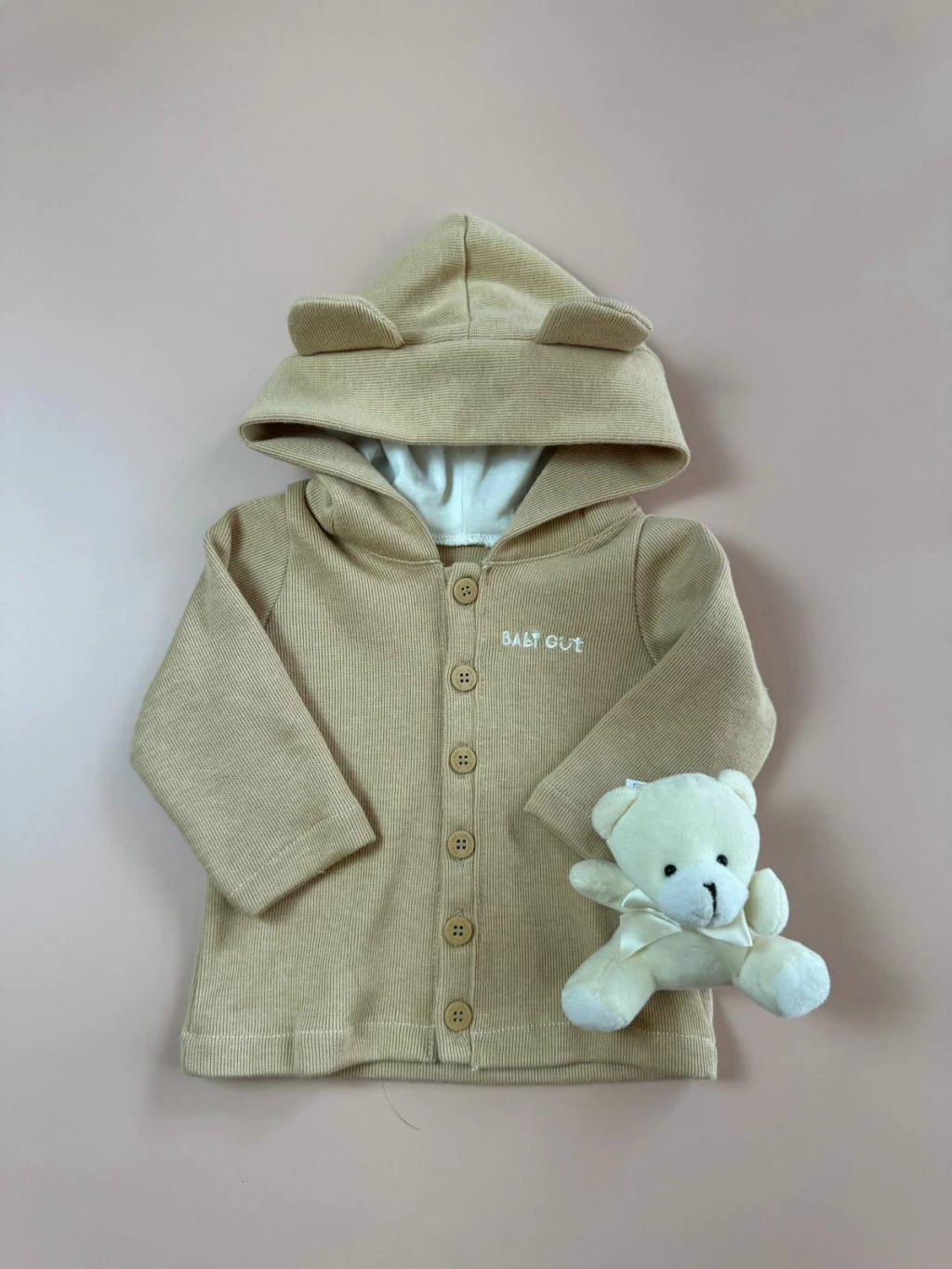 DESCRIÇÃO: casaco em ribana perfeito para meia estação com detalhe na touca de orelinhas, forrada.