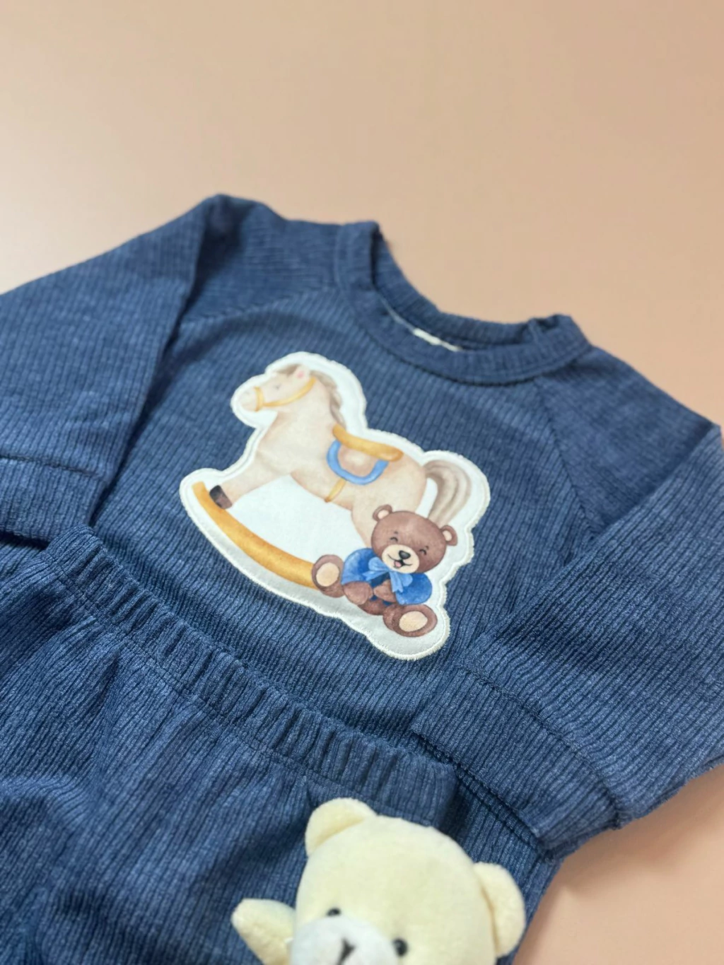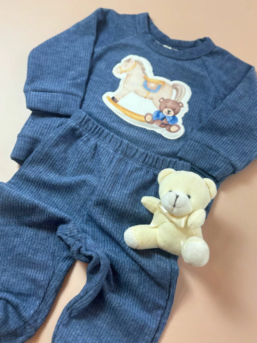 DESCRIÇÃO: CONJUNTO DE TRICO AZUL PELUCIADO COM ELASTANO.
