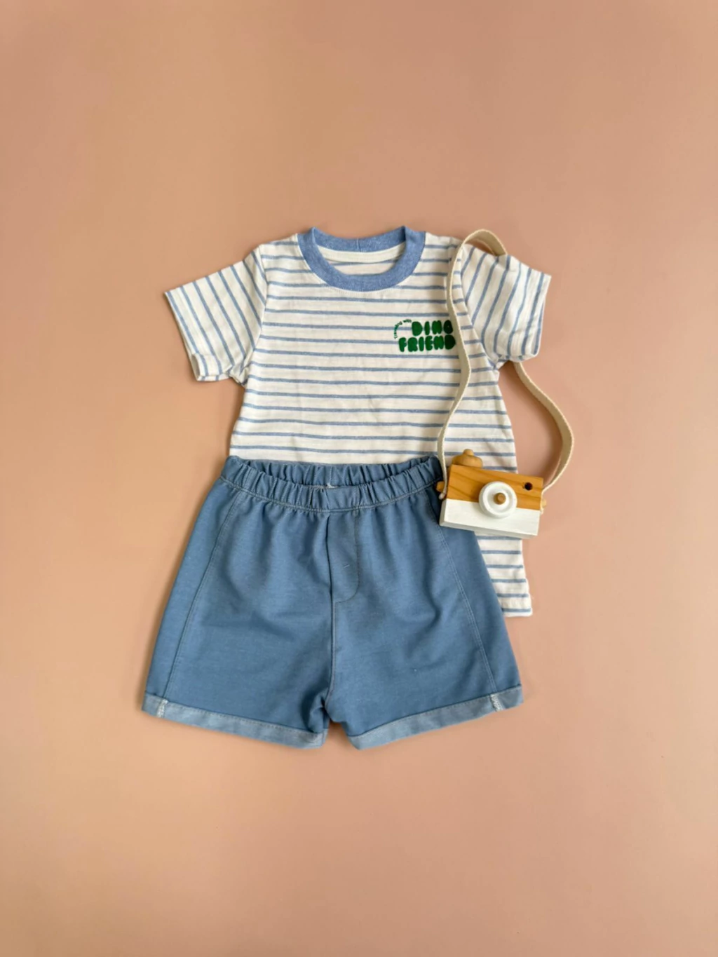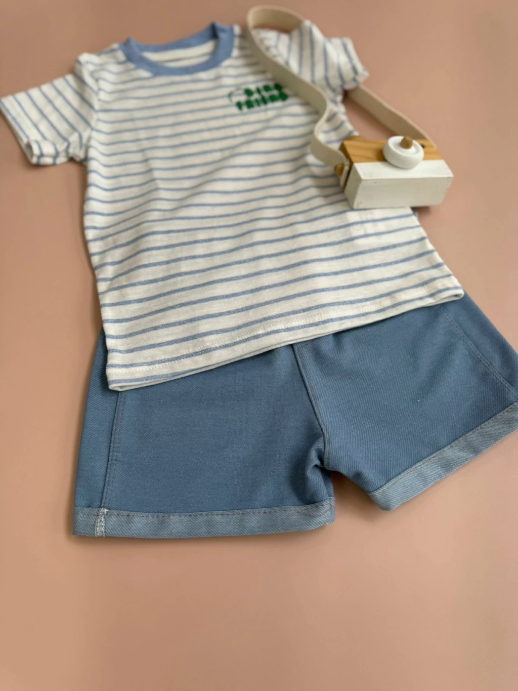 CONJUNTO CAMISETA COM BERMUDINHA QUE IMITA O JEANS.